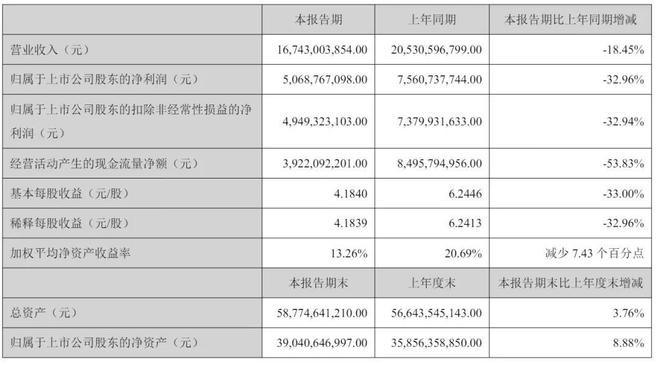 迈瑞医疗2025年上半年净利为50.69亿元,较上年同期的75.61亿元下降33%;扣非后净利为49.49亿元,较上年同期的73.8亿元下降33%。
