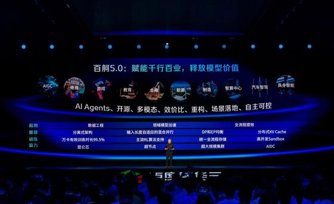 在AI基础设施方面,当下AI价值的核心关键词是 AI Agents、开源、多模态、效价比、重构、场景落地与自主可控。为全面支撑这些要素,百度智能云在本次大会上发布百舸AI计算平台5.0(简称“百舸5.0”),在算力、训推与实践应用层面实现系统性迭代升级。