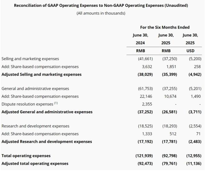 车车科技2025年上半年总经营费用为9280万元(1300万美元),较上年同期的1.219亿元减少23.9%;其中,车车科技2025年上半年销售及营销费用为3730万元,较上年同期的4170万元减少10.6%;一般及行政开支为3730万元,较上年同期的6180万元减少39.7%;研发费用为1830万元。