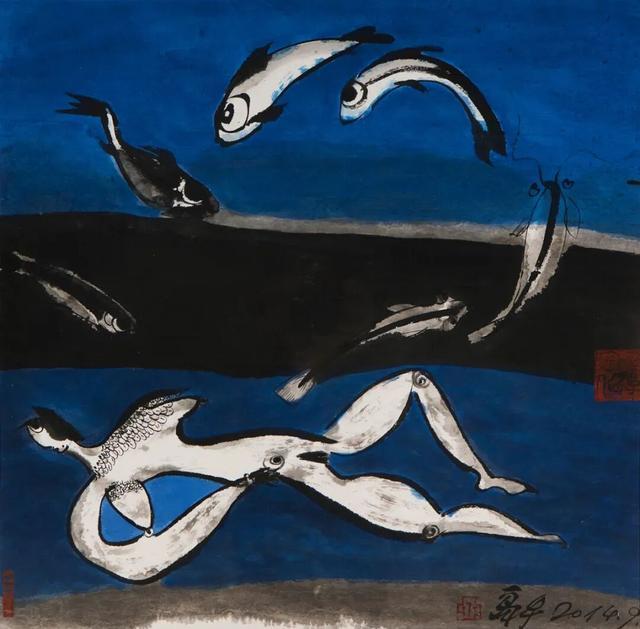 岛子,《黏土尚未形成》纸本水墨设色,70x70cm,2014