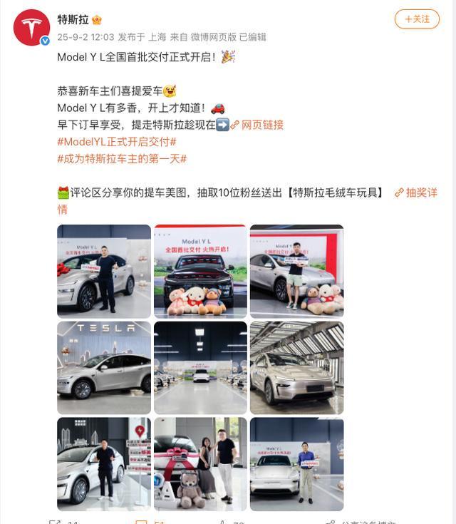 特斯拉Model Y L正式开启全国首批交付 售价33.9万元 续航751公里