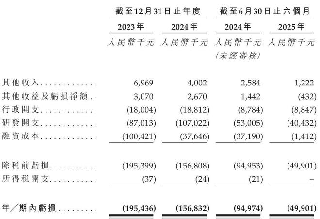 麦科奥特2023年、2024年其他收入分别为697万元、400万元;期内亏损分别为1.95亿、1.57亿元。麦科奥特2025年上半年营收为122万元,期内亏损为4990万元。
