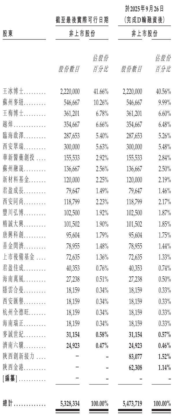 IPO前,王冰持股为40.56%,苏州麦纽持股为9.99%,王梅博士持股为6.6%,越焯持股为6.48%;