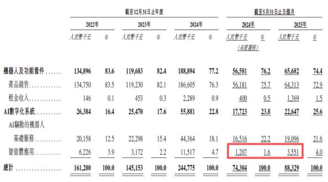云迹科技2025年前5个月来自智能体应用(即HDOS)业务收入占比为4%,上年同期仅占1.6%。