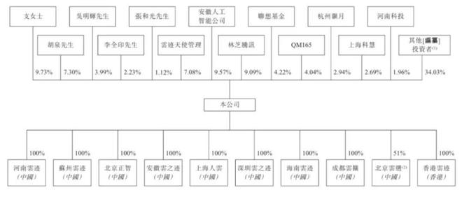 科大讯飞持股的安徽人工智能公司持股9.57%,朱子刚持股为2.07%,澜亭持股3.29%,腾讯持股为9.09%,茂迹持股为4.06%,上海科慧持股为2.69%,光控众盈持股2.01%,海银持股为1.83%,沸点持股为10.7%;