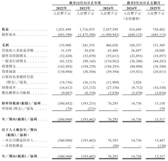飞骧科技2022年、2023年、2024年期内利润分别为-3.61亿元、-1.93亿元、7630万元。