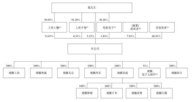 飞骧科技股权比例高度分散,IPO前,龙华通过上海上骧控制13.67%股权,通过上海辛翔控制4.51%股权,直接持股为3.15%,通过斐振电子控制1.83%股权,龙华一共控制公司23.16%股权,有58.56%的投票权。