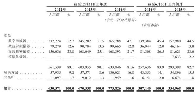 普源精电2025年上半年数字示波器收入为1.58亿元,占营收的比例为44.5%;来自微波射频仪器收入为4616万元,占比为13%;来自直流精密仪器收入为8162万元,占比为23%。