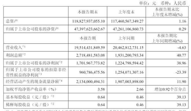 复星医药2025年上半年净利为17亿元,较上年同期的12.25亿元增长39%;扣非后净利为9.61亿元,较上年同期的12.54亿元下降23%。