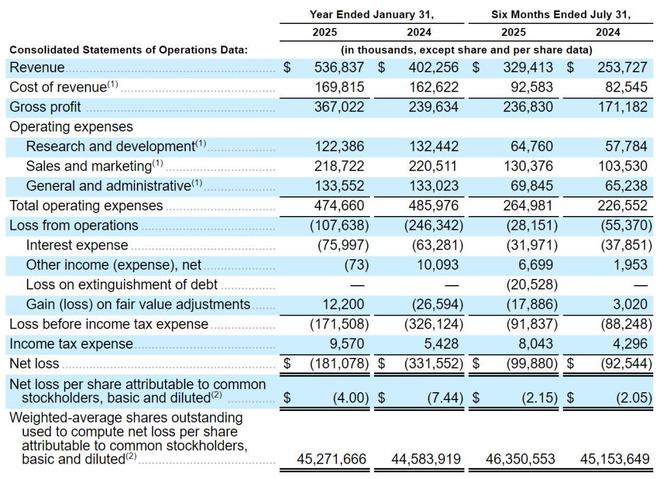 截至2025年7月31日的半年,Navan营收为3.29亿美元,上年同期的营收为2.53亿美元;运营亏损为2815万美元,上年同期的运营亏损为5537万美元;净亏损为9988万美元,上年同期的净亏损为9254万美元。