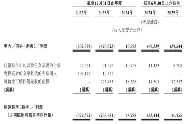 聚水潭2022年、2023年、2024年经调整净利分别为-3.79亿、-2.06亿、4899万元;2025年上半年经调整净利为4696万元,上年同期为经调整亏损3344万元。