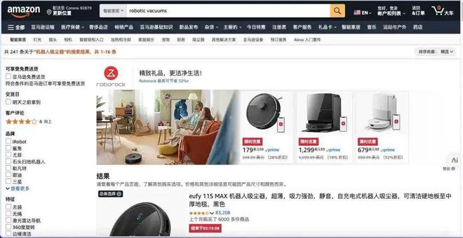 Tech星球发现,如果在亚马逊上搜索“robotic vacuums”,会迅速跳出来石头科技的三款产品:Q7 L5、 Saros 10R、Qrevo Edge S5A。