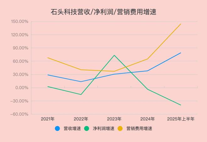 Tech星球统计发现,从2022年、2024年和今年上半年,石头科技的净利润增速一直为负数。除去2023年,石头科技的营销费用增速始终大于营收和利润增速,今年上半年其营销费用增速达到了144.51%,而净利润增速则为-39.55%。