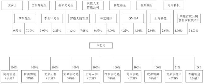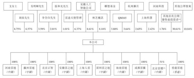 IPO前,支涛女士持股为9.73%,胡泉持股为7.30%,联合创始人吴明辉持股为3.99%,李全印持股为2.23%,张和光持股为1.12%,员工持股平台云迹天使管理持股为7.08%;