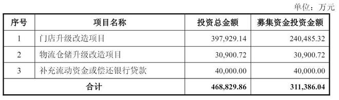 其中,24亿元用于门店升级改造项目,3.1亿元用于物流仓储升级改造项目,4亿元用于补充流动资金或偿还银行贷款。
