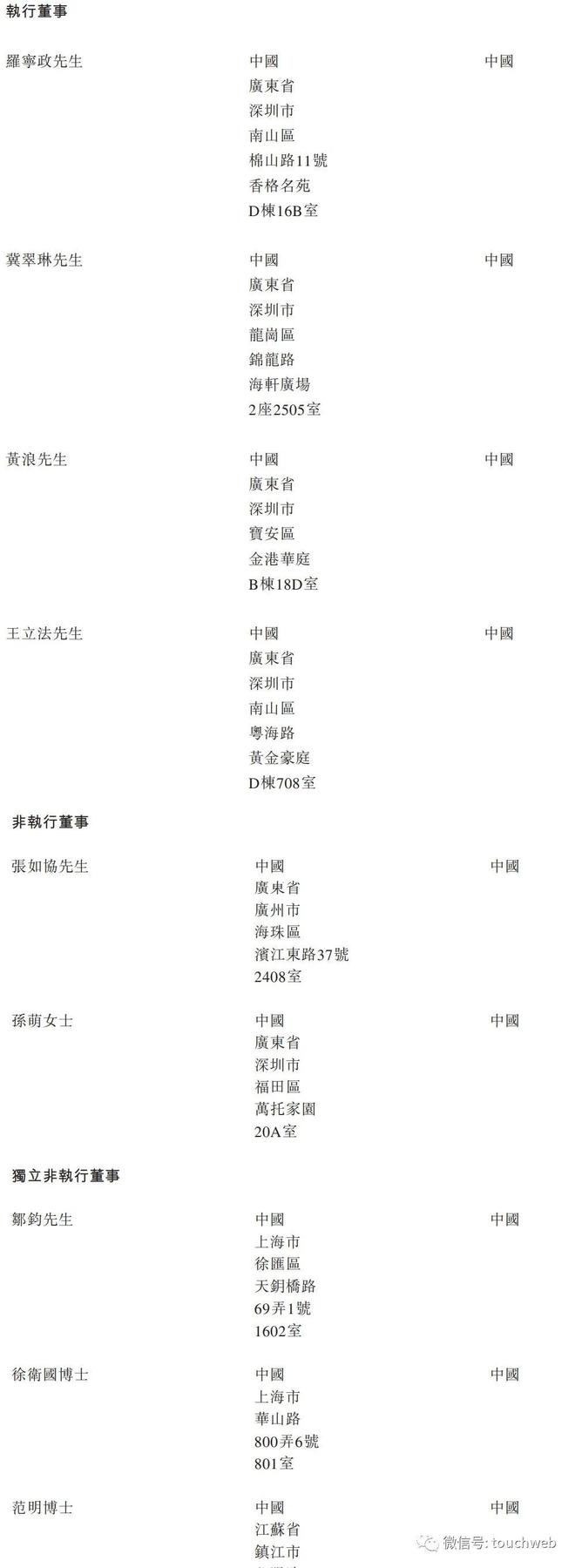 执行董事分别为罗宁政、冀翠琳、黄浪、王立法;非执行董事分别为张如协、孙萌女士;独立非执行董事分别为邹钧、徐卫国博士、范明博士。