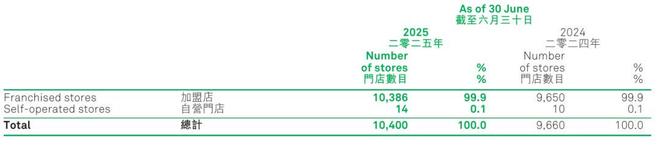 截至2025年6月30日,锅圈一共有10400家门店,其中,加盟店有10386家,占比为99.9%;自营门店有14家。