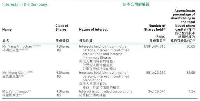 截至目前,杨明超控制公司50.65%股权,孟先進控制32.08%股权,杨童雨女士控制1.24%股权。