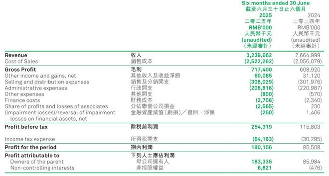 锅圈2025年上半年毛利为7.17亿元,较上年同期的6.09亿元增长17.7%;期内利润为1.9亿元,上年同期的期内利润为8551万元。