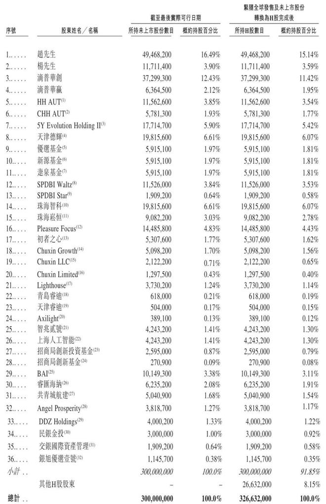 IPO前,赵杰辉持股为16.49%,杨磊持股为3.9%,滴普华创持股为12.43%,滴普华赢持股2.12%,高瓴旗下HH AUT持股为3.85%,高瓴旗下CHH AUT持股1.93%,五源资本旗下5Y Evolution Holding II持股为5.9%,IDG旗下天津德辉持股为6.61%;