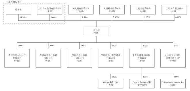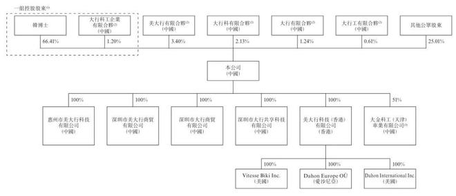 IPO后,韩德玮博士持股为66.41%,大行科工企业有限合伙持股为1.2%;韩德玮博士一共控制67.61%股权。