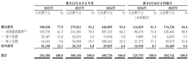 大行科工国内销售是有3个途径,分别为向经销商销售、线下直销、线上直销,2024年来自线上销售的收入达1亿元,占营收的比例为22.2%。