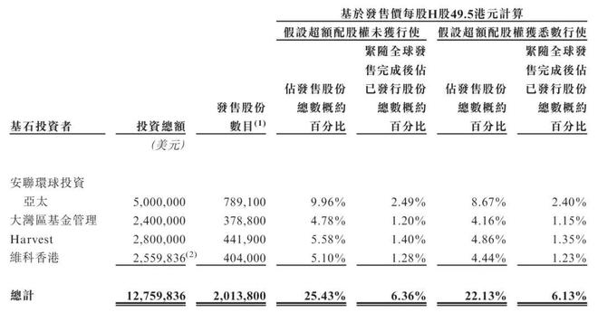 大行科工基石投资者分别为安联环球投资亚太、大湾区基金管理、Harvest、维科香港,一共认购金额为1276万美元。