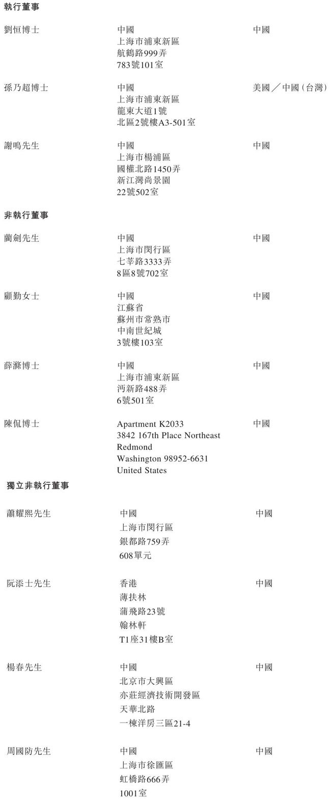 天辰生物执行董事分别为刘恒博士、孙乃超博士、谢鸣;非执行董事分别为蔺剑、顾勤女士、薛涤博士、陈侃博士;独立非执行董事分别为萧耀熙、阮添士、杨春、周国防。