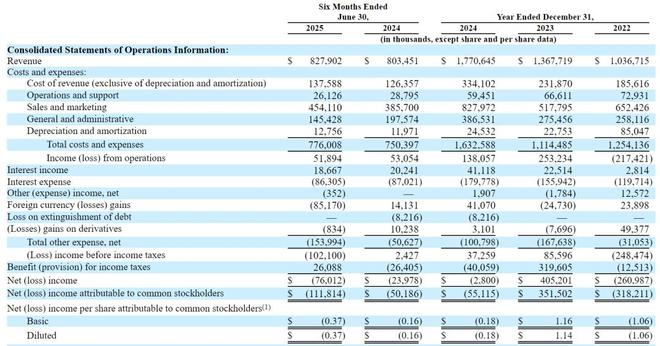 StubHub在2025年上半年营收为8.3亿美元,较上年同期的8亿美元增长3.74%;运营利润为5189万美元,较上年同期的5305万美元下降2.2%;净亏损为7601万美元,上年同期的净亏损为2398万美元。