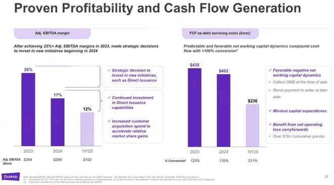 StubHub在2025年上半年Adjusted EBITDA为1亿美元,上年同期为1.39亿美元;Adjusted EBITDA率为12%,较上年同期的17%降5个百分点。