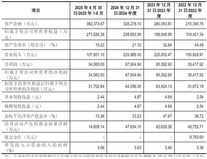 招股书显示,海安橡胶2022年、2023年、2024年营收分别为15亿元、22.51亿元、23亿元;净利分别为3.54亿元、6.54亿元、6.79亿元;扣非后净利分别为3.19亿元、6.39亿元、6.41亿元。
