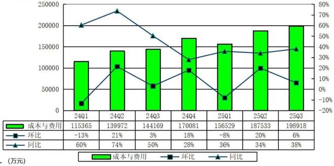 亚朵2025年第三季度成本与费用为19.89亿元,较上年同期的14.42亿元增长37.9%。
