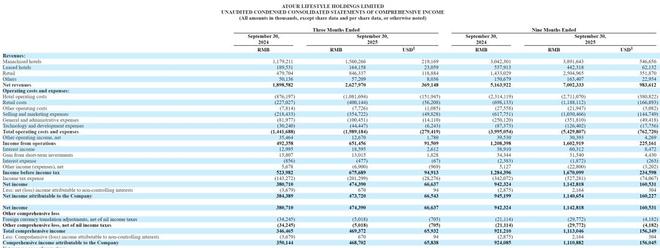亚朵2025年第三季度净利为4.74亿元(约6700万美元),较上年同期的3.81亿元增长24.6%;经调整净利为4.88亿元(约6900万美元),较上年同期的3.84亿元增长27%。