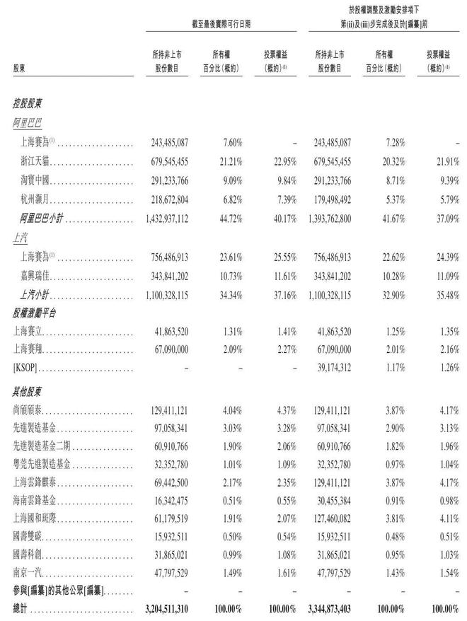 IPO前,阿里系持有斑马智行41.67%股权,及37.09%的投票权;上汽持有斑马智行32.9%的股权,及35.48%的投票权。