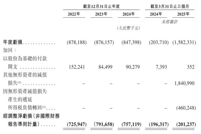 斑马智行2022年、2023年、2024年经调整净亏损分别为7.26亿元、7.92亿元、7.57亿元;2025年第一季度经调整净亏损为2亿元,上年同期的经调整净亏损为1.96亿元。