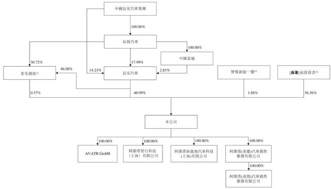 IPO前,长安汽车直接及通过常安创新间接持有阿维塔已发行股本总额约41.57%。中国长安汽车集团直接及通过其全资附属公司辰致汽车及中汇富通间接持有长安汽车约35.04%股权,并为长安汽车的控股公司。