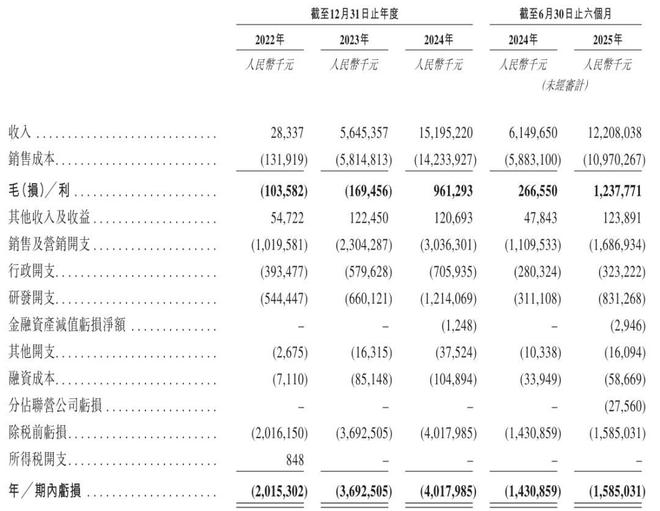 阿维塔2025年上半年营收为122亿元,较上年同期的61.5亿元增长98.4%;毛利为12.38亿元,上年同期的毛利为2.67亿元;期内亏损为15.85亿元,上年同期的期内亏损为14.31亿元。