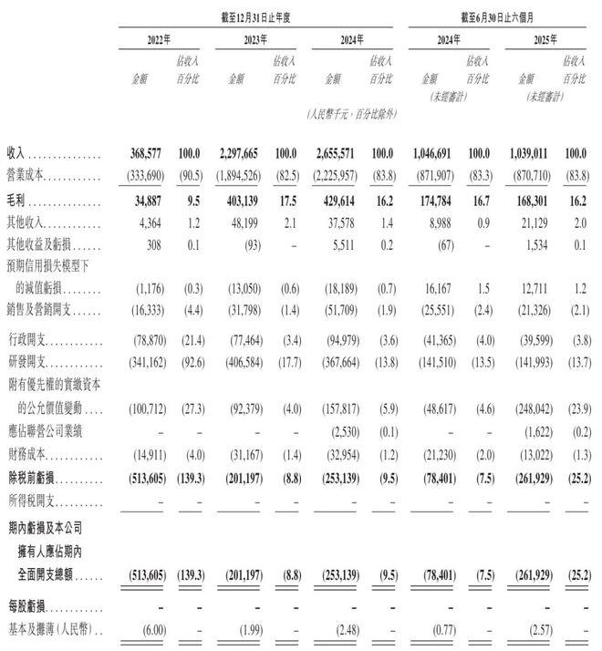 招股书显示,车联天下2022年、2023年、2024年营收分别为3.69亿元、23亿元、26.56亿元;毛利分别为3489万元、4亿元、4.3亿元;毛利率分别为9.5%、17.5%、16.2%;期内亏损分别为5.14亿元、2亿元、2.53亿元;期内亏损率分别为139.3%、8.8%、9.5%。