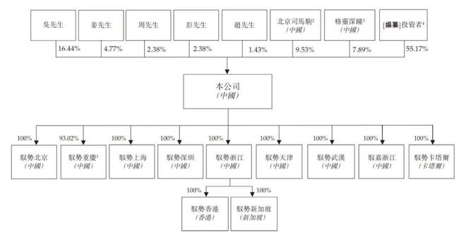 员工持股平台北京司马驹持股为9.53%,由吴甘沙(其普通合伙人)实益拥有18.53%权益;及吴甘沙及周鑫(其有限合伙人)代表购股权承授人拥有61.47%及20%权益。