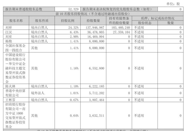 刘祥是创始人及公司单一最大股东。截至2025年9月30日,刘祥持股为24.32%,江汉持股为6.43%,刘亚持股为2.9%,杨艳、全国社保基金四一四组合分别持股为1.41%;