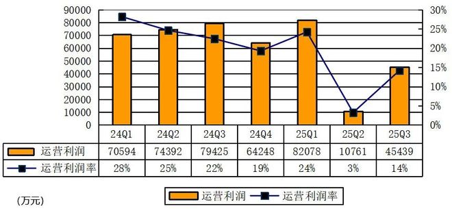 霸王茶姬2025年第三季度运营利润4.54亿元(约6383万美元),运营利润率为14%。