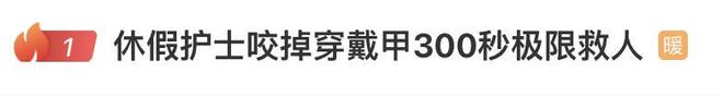 8月24日,“休假护士咬掉穿戴甲300秒极限救人”话题登上微博热搜第一。