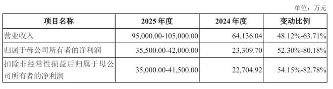 2025年度,公司预计可实现营收约 9.5亿至10.5亿,同比增幅约为48%至63.71%;公司预计可实现扣非净利润同比增幅约为52.30%-80.18%和 54.15%-82.78%,主要变动原因与2025 年1-9月相关变动原因一致。