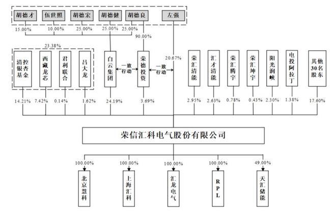 白云集团、左强为荣信汇科的共同控股股东。白云集团直接持有公司24.19%股份,左强直接持有20.67%股份。白云集团、左强共同合计直接持有荣信汇科18,250万股股份,占荣信汇科总股本的44.86%。