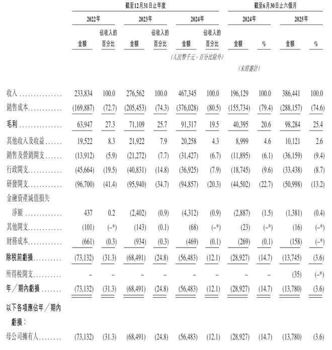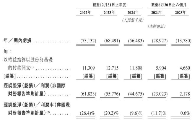 乐动机器人在2022年、2023年、2024年经调整净利分别为-6182万、-5578万元、-4468万元;2025年上半年经调整净利为218万元。