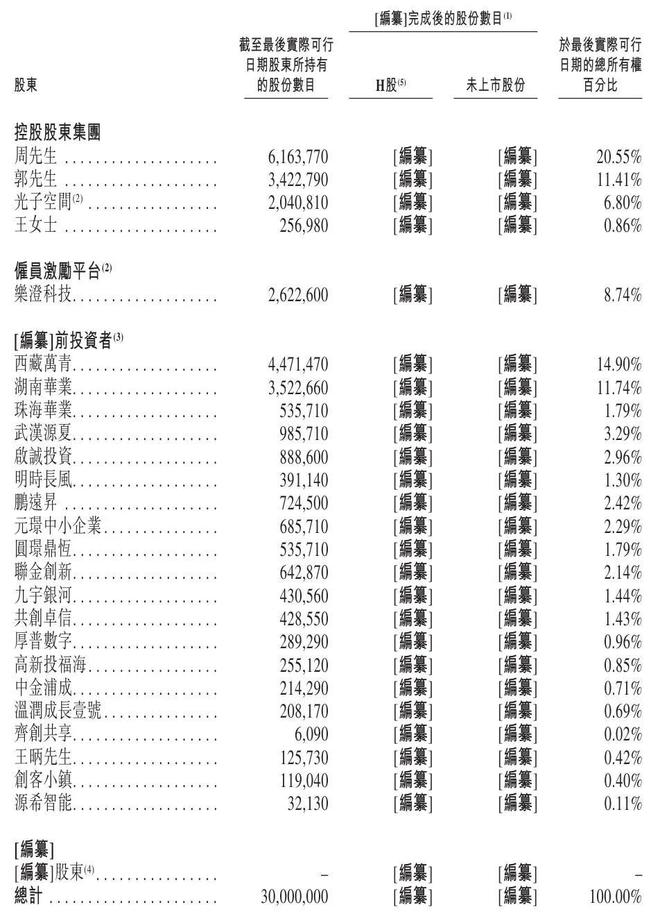 IPO前,周伟、郭盖华(根据周伟与郭盖华订立的一致行动协议)、王明月女士(周伟的配偶)与光子空间(其普通合伙人为周伟且被视为由周伟控制)作为控股股东合共于已发行股本总额中拥有约39.61%权益。