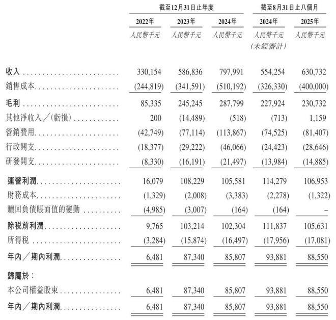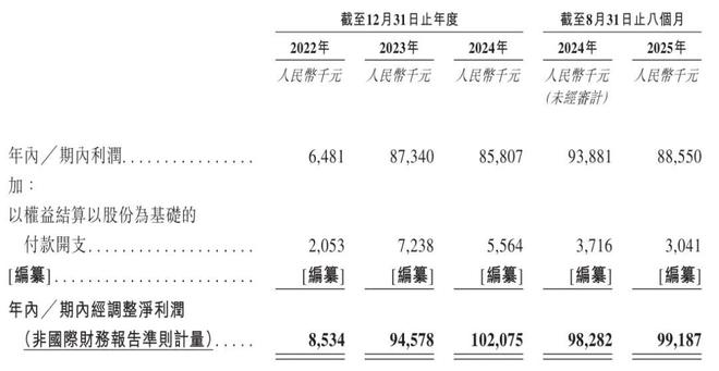 乐摩物联2022年、2023年、2024年经调整净利分别为853万元、9468万元、1亿元;乐摩物联2025年前8个月经调整净利为9919万元。