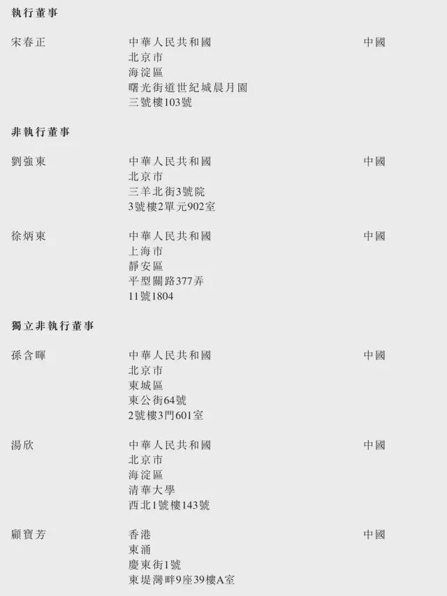 京东工业執行董事为宋春正,非执行董事分别为刘强东、徐炳东;独立非執行董事分别为孙含晖、汤欣、顾宝芳。