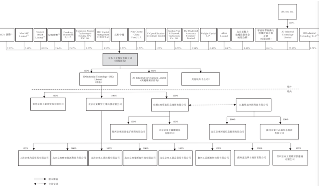 于本公告日期,京东集团通过其全资子公司持有京东工业已发行股本总额的约77.32%。京东集团创始人刘强东通过Max I&P Limited持股为3.68%,这部分股权是京东工业对刘强东的奖励。