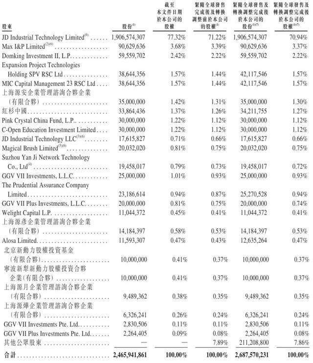 JD Industrial Technology持股0.71%,Magical Brush持股0.81%,Suzhou Yan Ji持股0.79%,GGV VII Investments持股1.01%,The Prudential Assurance Company持股0.94%,GGV VII Plus持股为0.81%,WelightCapital持股为0.45%,上海源彦企业管理咨询合伙企业持股为0.58%,Alosa Limited持股为0.47%;